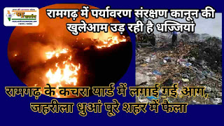 रामगढ़। रामगढ़ के मूरामकला स्थित वार्ड नंबर 6 में छावनी परिषद का कचरा यार्ड बनाया हुआ है जहां पूरे रामगढ़ का प्लास्टिक कचड़ा डाला जाता है। इस कचरा यार्ड में मंगलवार की रात किसी ने आग लगा दी। आग लगने के बाद कचरा यार्ड के काफी बड़ा भाग धू-धू कर जलने लगा। आग लगने के बाद पूरे रामगढ़ में धुएं का अंबार दिखाई देने लगा। ऐसा नहीं है कि यह आग पहली बार लगाई गई हो बल्कि आसपास के लोगों के अनुसार अक्सर वहां पर आग लगा दी जाती है मगर वह व्यक्ति कभी पकड़ा नहीं गया। आग लगने के बाद आसपास के लोगों को सांस लेने में काफी परेशानियों का सामना करना पड़ता है। छावनी परिषद के मुख्य अधिशासी अधिकारी सपन कुमार से मंगलवार की रात हमारे संवाददाता ने बातचीत की और उन्हें आग लगने की जानकारी दी। सपन कुमार ने कहा कि वह तुरंत इस बात का संज्ञान लेते हुए आग को बुझाने के लिए पानी का टैंकर भिजवाया। बुधवार की सुबह तक आज की वही स्थिति बनी हुई थी और चारों ओर धुआं पसरा हुआ था। वहां रहने वाले लोगों ने कहा कि इस धुए के वजह से सांस लेने में काफी तकलीफ का सामना करना पड़ रहा है घर के बड़े बुजुर्ग एवं छोटे बच्चों को काफी परेशानी उठानी पड़ रही है। हमारे संवाददाता के वहां पहुंचने के बाद कुछ लोग आग बुझाते दिखाई दिए उनसे बात करने पर उन लोगों ने बताया कि उनकी सरकारी ड्यूटी सुबह 7:00 बजे से लेकर 3:00 के 1:00 बजे तक रहती है उसके बाद उनका काम यहां नहीं रहता। आग के संबंध में उनसे पूछने पर उन्होंने बताया कि यहां पर अक्सर शाम को आग लगा दी जाती है मगर छावनी परिषद के कोई भी लोग उस वक्त मौजूद नहीं रहते हैं।