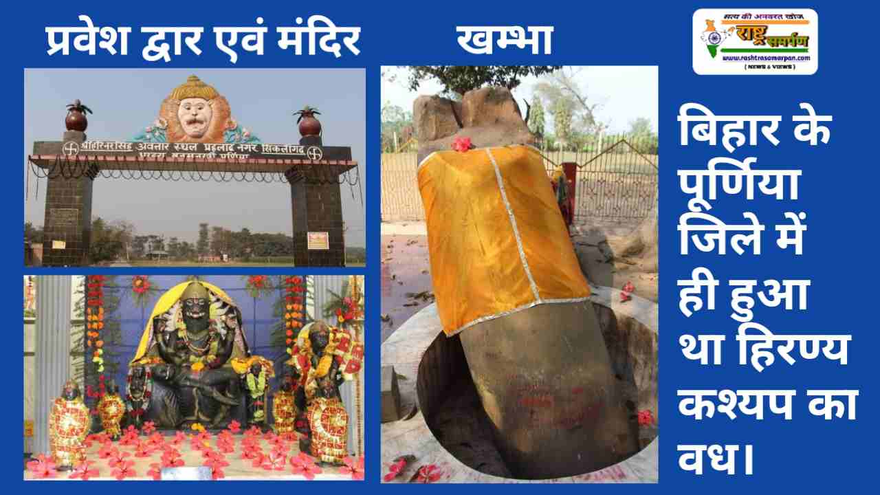 वर्तमान में कटिहार क्षेत्र के उप विकास आयुक्त एवं बनमनखी अनुमंडल के अनुमंडल पदाधिकारी रहे केशवर सिंह ने बताया कि इसकी कई प्रमाणिकताएं हैं। उन्होंने कहा कि यहीं हिरन नामक नदी बहती है। उन्होंने बताया कि कुछ वर्षों पहले तक नरसिंह स्तम्भ में जो छेद है उसमें पत्थर डालने से वह हिरन नदी में पहुंच जाता था। इसी स्थान पर भीमेश्वर महादेव का विशाल मंदिर है। मान्यता है कि हिरण्यकश्यप यहीं बैठकर पूजा करता था। मान्यताओं के मुताबिक हिरण्यकश्यप का भाई हिरण्यकच्छ बराह क्षेत्र का राजा था, जो अब नेपाल में प़डता है।
