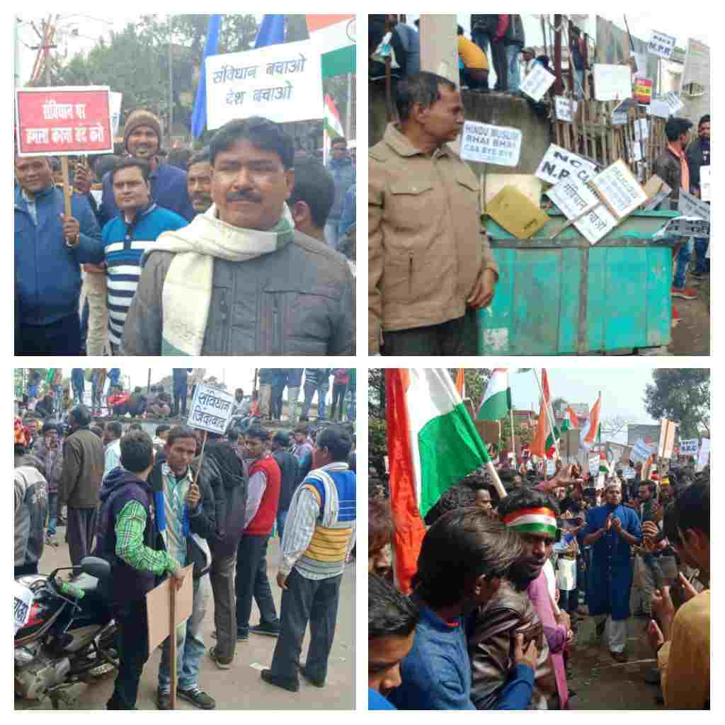 रामगढ़। रामगढ़ जिला एकता कमेटी के नेतृत्व में पूर्व घोषित कार्यक्रम के तहत शनिवार को अनुमंडल कार्यालय के समीप नागरिकता संशोधन बिल के विरोध में धरना प्रदर्शन किया गया। धरना स्थल पर अनुमंडल दंडाधिकारी अनंत कुमार के द्वारा 500 से 600 लोगों के एकत्र होने की अनुमति का उल्लंघन करते हुए हजारों की संख्या में पहुंचे लोगों ने प्रदर्शन किया। जिला सहित सीमावर्ती जिलों से भी अल्पसंख्यक समुदाय के लोग सुबह से ही विभिन्न वाहनों से धरना स्थल पर पहुंचने लगे थे। एसडीओ अनंत कुमार के द्वारा सुबह 11:00 बजे से 1:00 बजे तक शांतिपूर्ण धरना प्रदर्शन की अनुमति दी गई थी। धरना स्थल पर विभिन्न वक्ताओं ने नागरिकता संशोधन बिल पर अपने विचार रखे और संसद में पारित इस बिल को गलत बताते हुए रद्द करने की मांग की। धरना प्रदर्शन के बाद एसडीओ अनंत कुमार को राष्ट्रपति के नाम का ज्ञापन सौंपा गया।