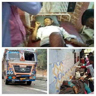 पीछे से आ रही ट्रक ने इनलोगों को धक्का दे मारा। इस दुर्घटना में संदीप को ज्यादा