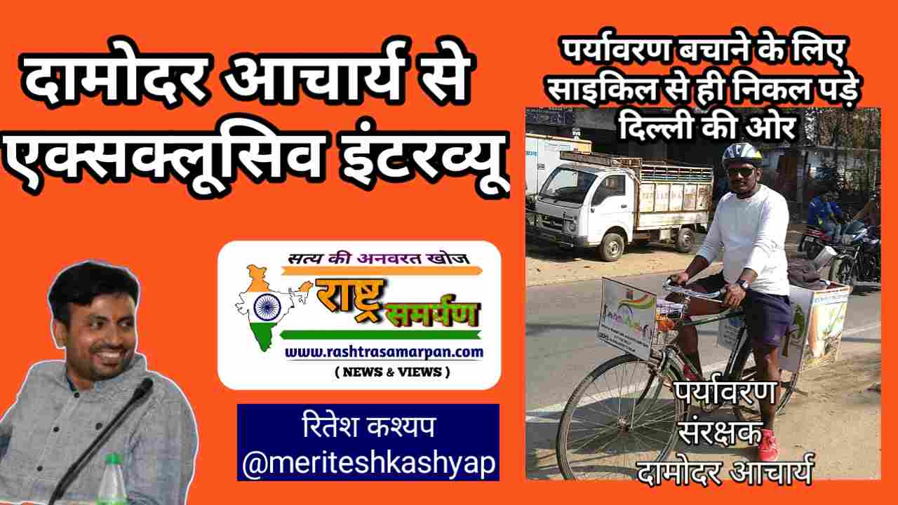 समाज में अभी भी ऐसे कई लोग हैं जो अपने घर परिवार से हटकर पूरे राष्ट्र की चिंता करते हैं उन्हीं में से सी एच दामोदर आचार्य भी है जिन्होंने पर्यावरण संरक्षण के सकारात्मक संदेश को देने के लिए साइकिल पर यात्रा करने की योजना बनाई। दामोदर के इस कदम की सराहना राष्ट्र समर्थन करता है साथ ही समाज से आग्रह करता है कि पर्यावरण संरक्षण पर थोड़ी से ही सही मगर अपनी भूमिका जरूर अदा करें।